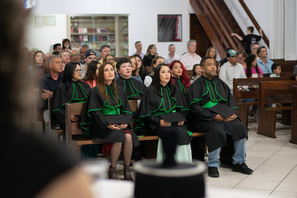 O formando Eberson Leite de Oliveira conduziu o juramento que prometia exercer a arte de cuidar com honestidade, respeito, dedicação e caridade. A oradora da turma Larissa dos Santos Andrade lembrou os desafios, alegrias e a união da turma em seu discurso. A professora Aline que guiou, ensinou e inspirou os formandos ao longo desta jornada também compartilhou sua fala emocionada. Atrás de cada formando, existe uma história de amor, dedicação e apoio incondicional. A formanda Zenaide Marta Revers Martins Peso compartilhou palavras de homenagem a todos que apoiaram a trajetória desses formandos.
